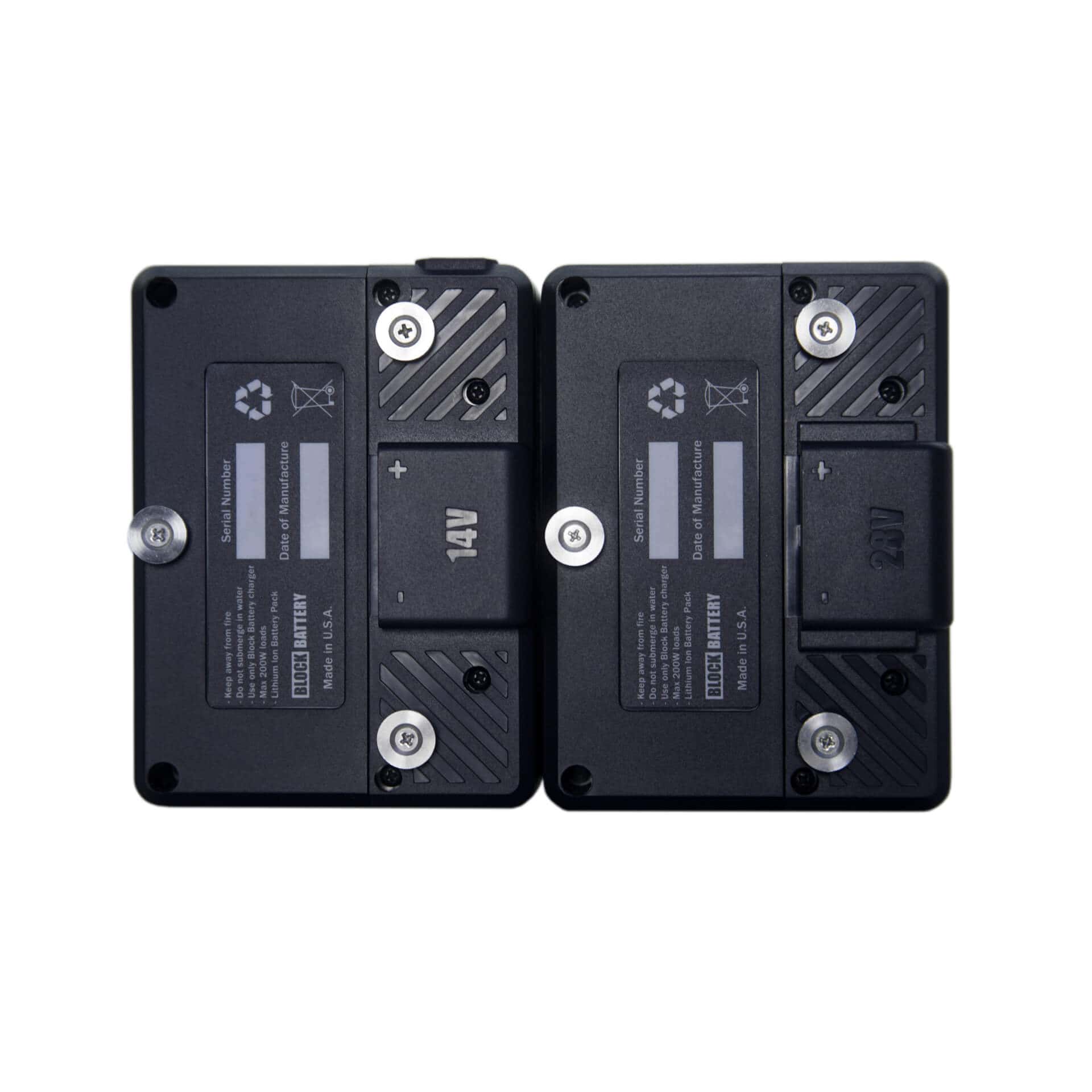 The Protean Battery from Block Battery is the first camera battery to offer three power solutions in one small, powerful, and light weight package. While preparing for a production it’s not unusual to need both 14v and 28v batteries. The Protean provides a quick and easy configuration between 14v and 28v while providing failsafe safety features that protect your most expensive equipment. The Protean also provides a quick and easy way to prepare a 150 watt lithium battery for shipping and travel. When configured as a 14v battery, the Protean provides a D-Tap and compatibility to all “Three Stud Mounts”. When configured as a 28v battery, the Protean has no D-Tap and is compatible with only 26V “Three Stud mounts”. The incorporation of this failsafe feature protects all 14v equipment from the Protean’s higher 28v output. In travel mode, the Protean is configured as two mechanically and electrically isolated 75whr batteries making it easy to carry-on or ship as needed.